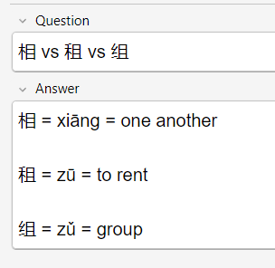 Not OP, but I hadn’t thought of creating Anki flashcards for similar characters that I struggle with. I would be interested to learn more about the “A vs B” cards. Is that something like: