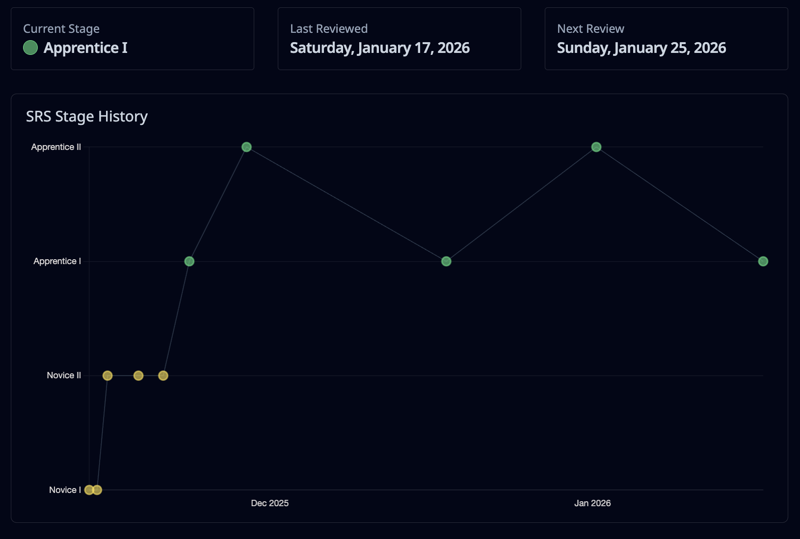 Similar looking items: For me direct comparison cards solves this better than any other method. I just make my own Anki cards that directly compare two characters that I get mixed up (literally “A vs B”). A week or two of those and situation sorts itself out! The only issue is you need to use another separate SRS app and manually make the comparison cards - so it’s a pain. Nothing like this exists inside HH, but it’s completely worth it IMHO since it’s so effective.